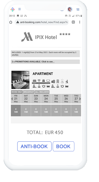 When guests click on the ANTI-BOOK button, they gain the power to tailor rates and amplify benefits through their one-of-a-kind interactions within the platform.